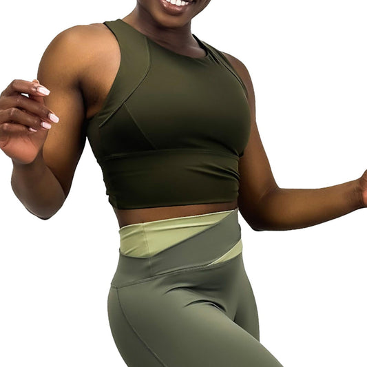 Anna-Kaci Active Women's High Neck Seamless Crop Tank Top with Wide Straps and Stretch Compression Fit
