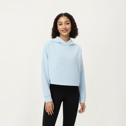 Anna-Kaci Active Women's Long Sleeve Cropped Hoodie with Kangaroo Pocket and Striped Sleeve Detail