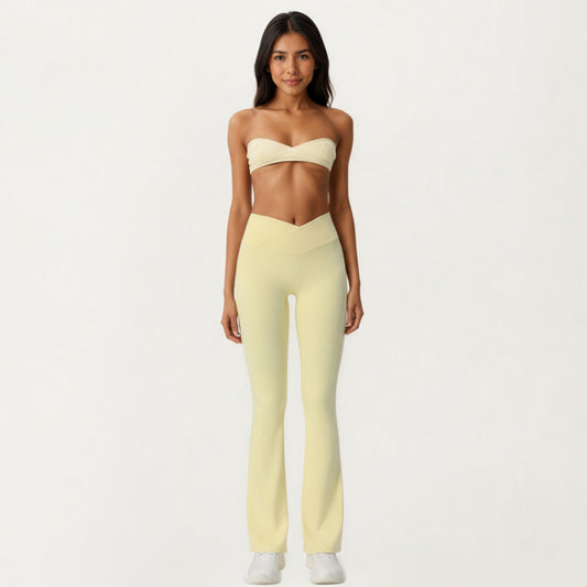 Anna-Kaci Active Women's Crossover Waist Flare Leg Yoga Pants with Stretch Fit Fabric and Smooth Contoured Silhouette