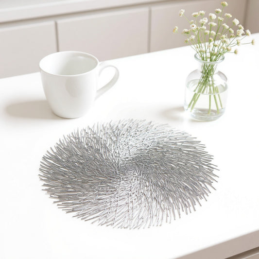 Anna-Kaci 4-Piece Round Woven Placemat with Radiating Textured Design