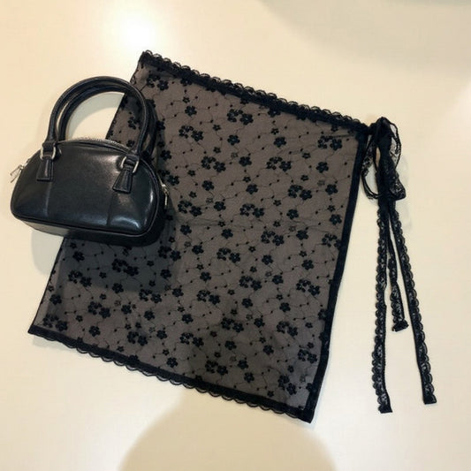 Anna-Kaci Women's Sheer Lace Neck Scarf with Embroidered Rose Floral Edging and Scalloped Trim Detail
