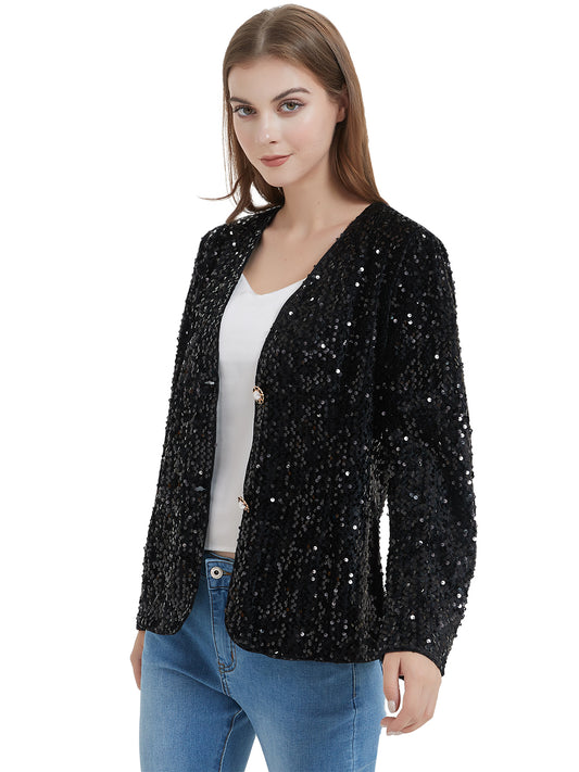Anna-Kaci Women's Sequins Blazer Cardigan Jacket Open Front Casual Shiny Coat