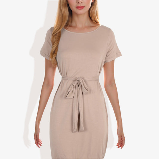Anna-Kaci Women's Short Sleeve Casual Dress with Waist Tie Comfortable and Versatile Design Perfect for Everyday Wear and Casual Outings
