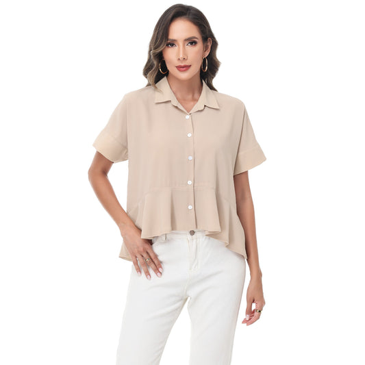 Anna-Kaci Women's Short Sleeve Button-Up Blouse with Peplum Hem and Classic Collar