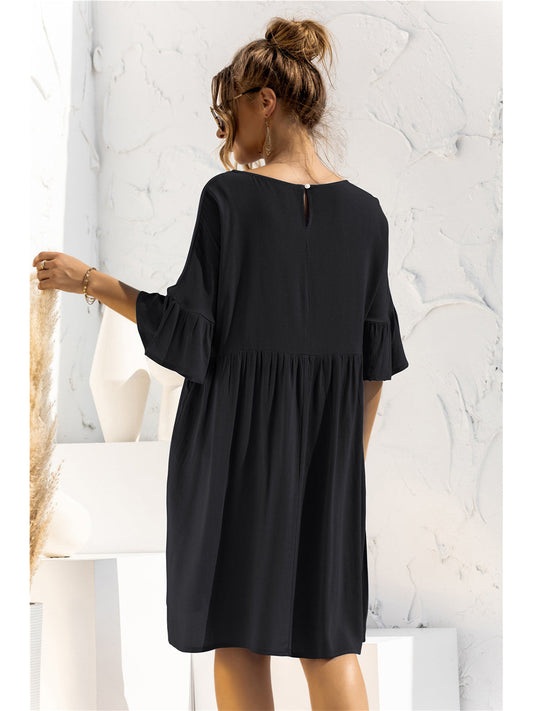 Anna-Kaci Women's Short Sleeve Loose Fit Midi Dress with Ruffle Detail and Side Pockets