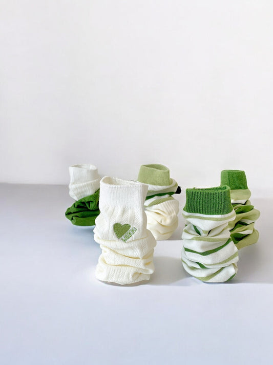 Anna-Kaci Women's Striped and Heart Embroidered Socks in Green Tones