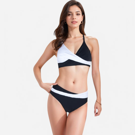 Anna-Kaci Women's Two Piece Bikini Set with Cutout Front Detail and Contrast Trim Strappy Design