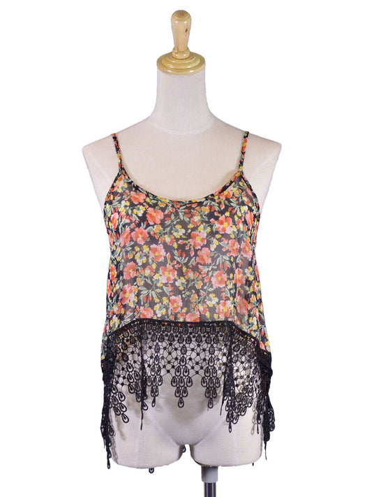 Audrey 3+1 Sweet Admire Garden Floral Chiffon Cropped Top Long Lace Trim