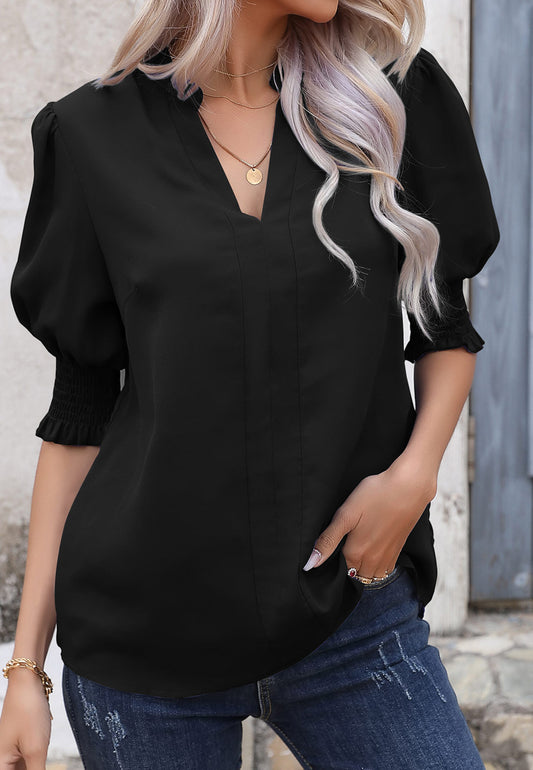 Babydoll Ruffle Hem Flutter Sleeve Textured Blouse