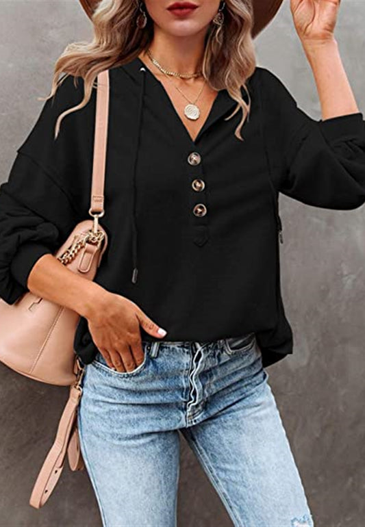 Button Detail Hooded Sweatshirt