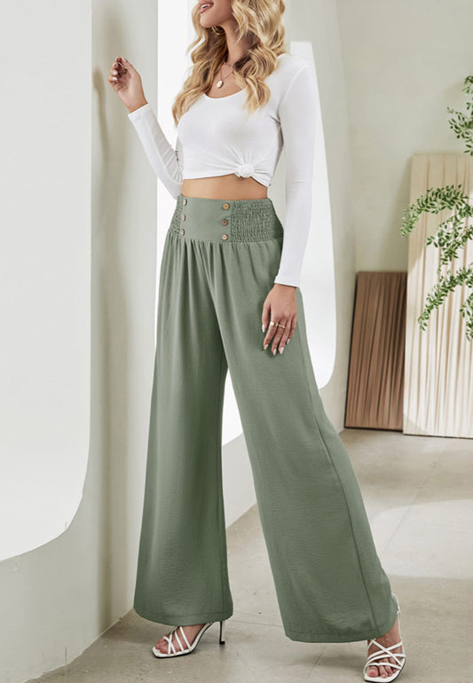 Button Detail Shirred Waist Pants