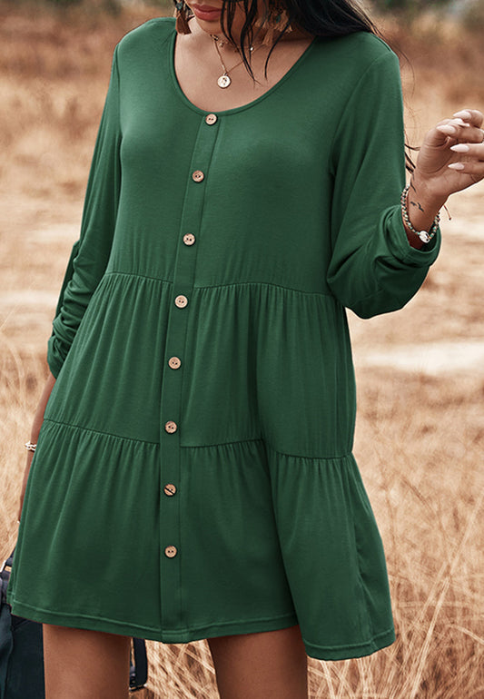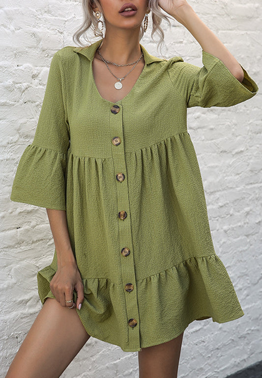 Button Down Dolman Sleeve Detailed Belted Shirt Tunic Dress