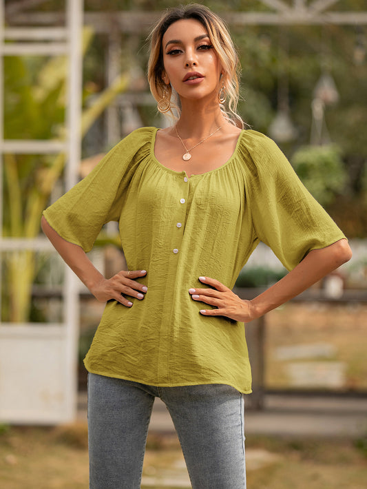 Button Gathered Summer Blouse