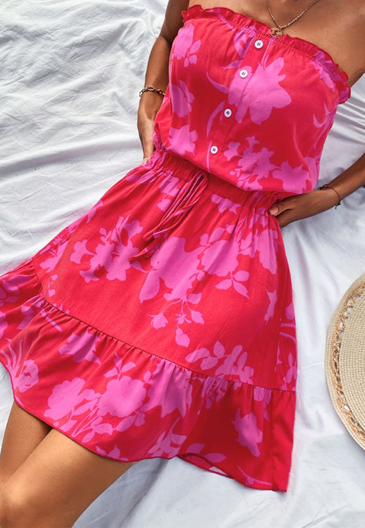 Button Front Strapless Dress