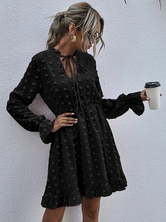 Clip Dot Halter Neck Textured Pleated Flared Midi Dress