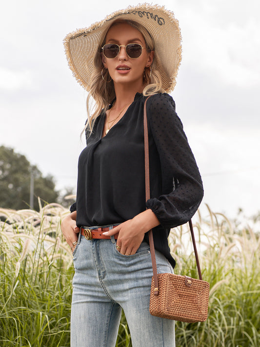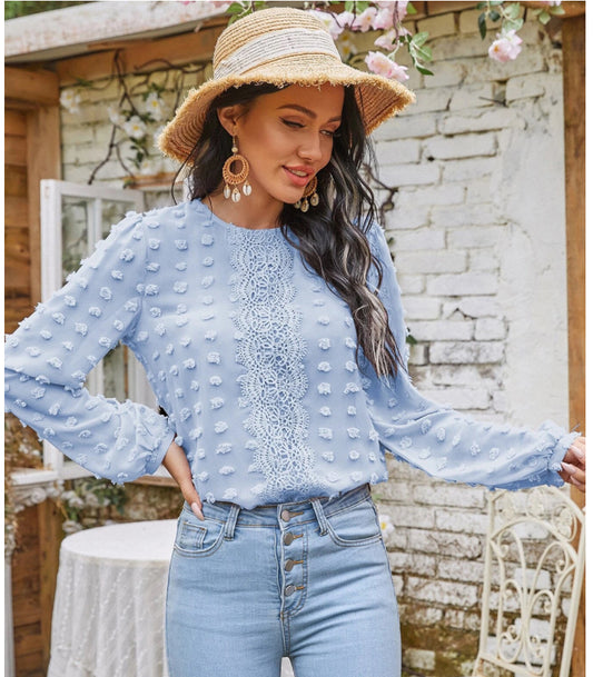 Classy Puff Sleeve Eyelet Embroidered T-Shirt