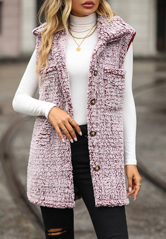 Collared Button Front Teddy Vest