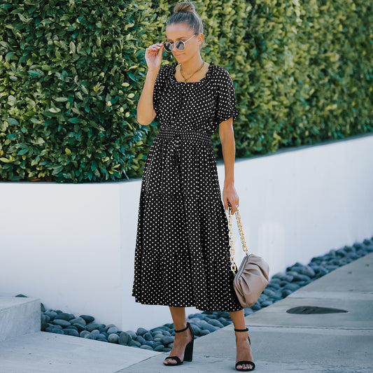 Elegant Polka Dot Ruffle Hem Maxi Dress