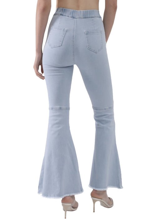 Elastic Waist Distressed Flared Long Bell Bottom Denim Jeans