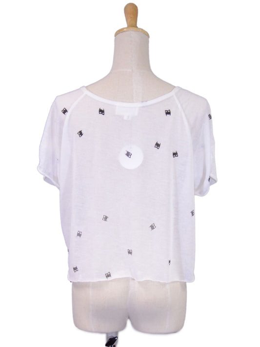 En Creme Dark Night Mask All Over Print Short Sleeves Knit Cropped Shirt