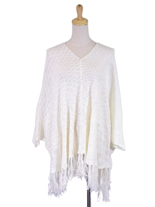 En Creme Boho Free Your Spirit Fringe Hem Lightweight Knit Hooded Poncho