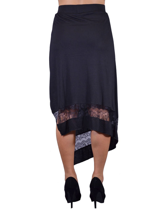 En Creme Fanciful Asymmetrical Lace Details Elastic Waist Jersey Knit Skirt