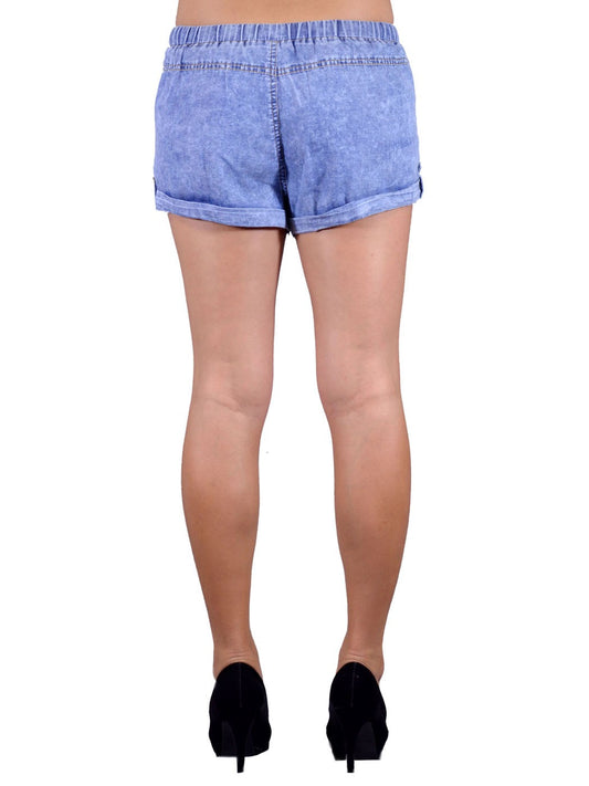 En Creme Fun Hip Stone Washed Denim Star Studs Pockets Elastic Waist Shorts