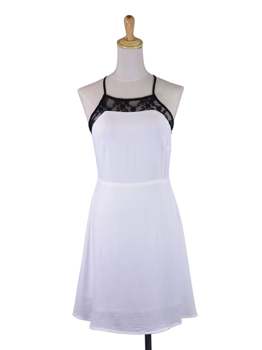 En Creme Sexy Chic White & Black Criss Cross Back Floral Lace Trim Flowy Dress