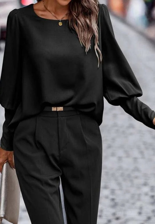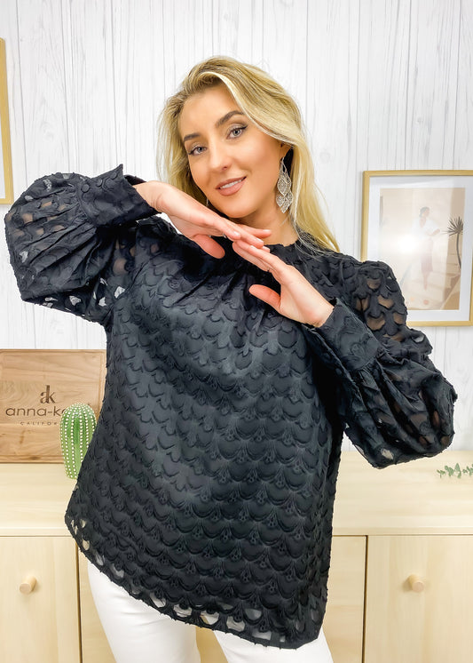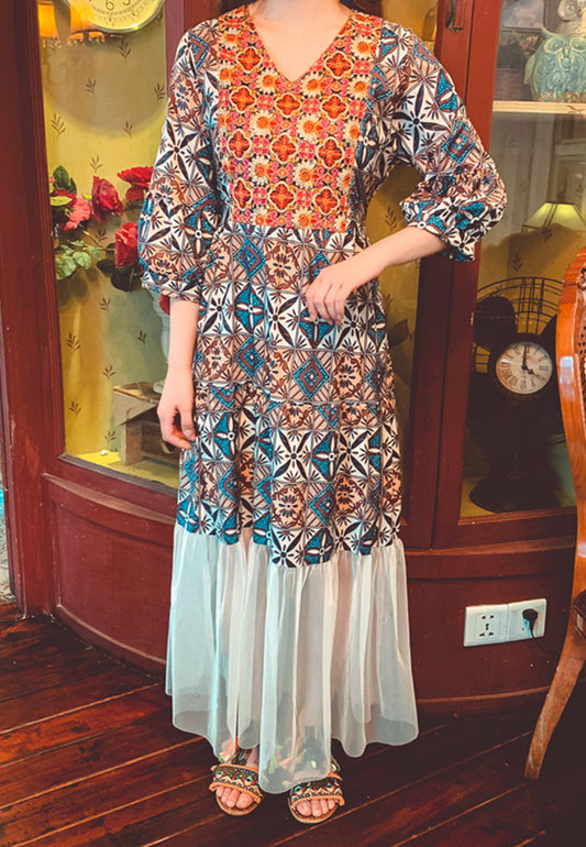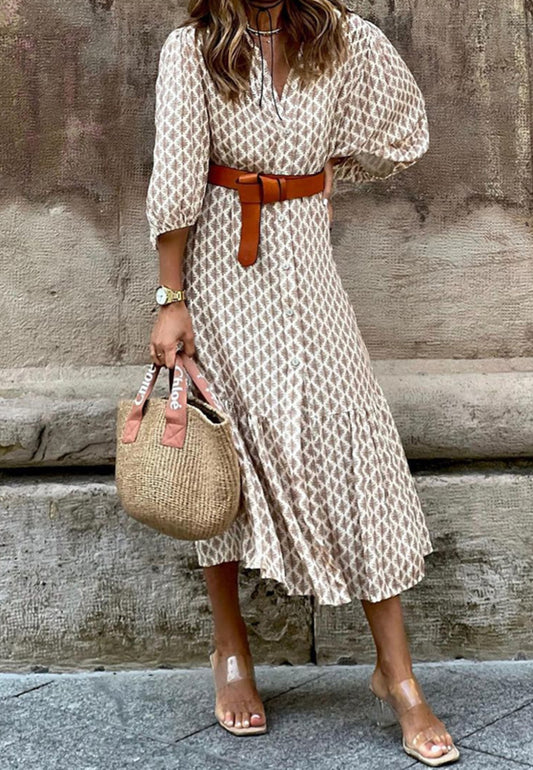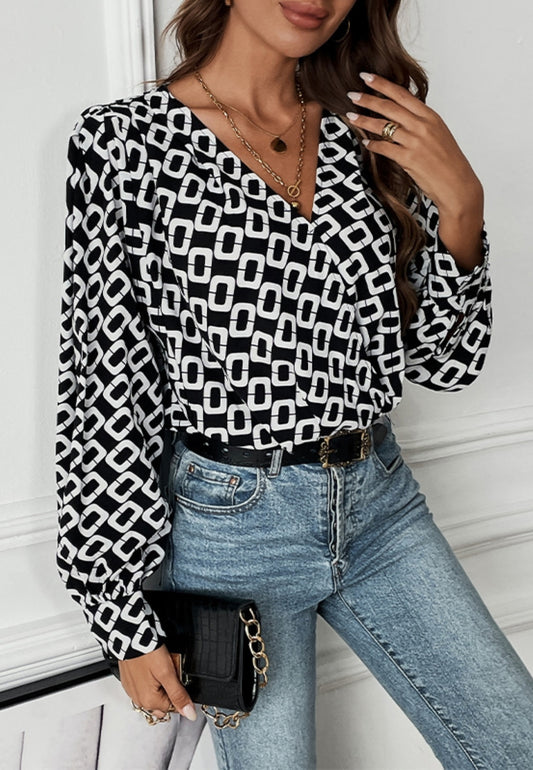 Geometric Print Long Sleeve Blouse with Tie Neck Detail