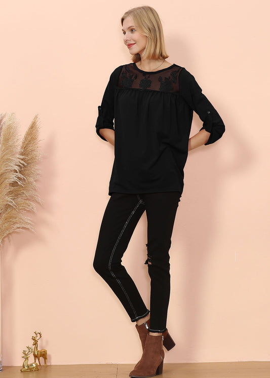 Lace Detailed Short Flying Sleeved Pull Over Blouse