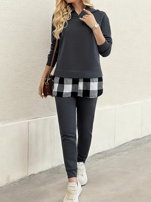 Layered Look Sweatshirt with Plaid Hem Detail and Long Sleeves