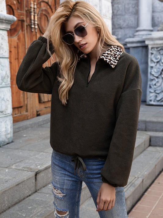 Leopard Collar Quarter Zip