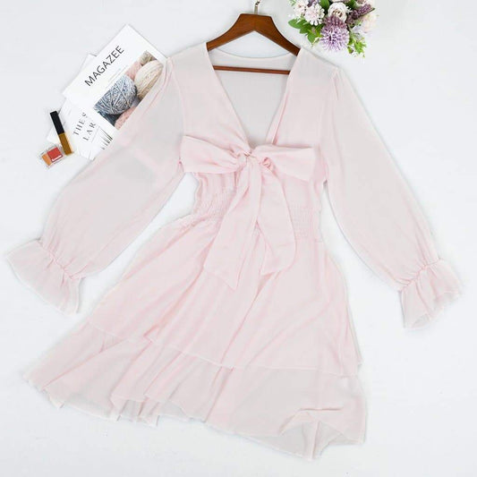 Line Printed Ruffle Sleeved V-Neck Blouse