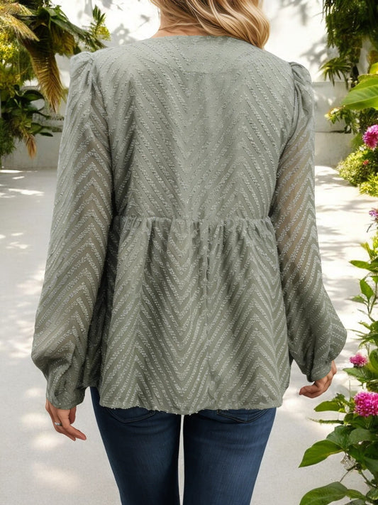 Long Sleeve Textured Peplum Blouse with Button Front Detail
