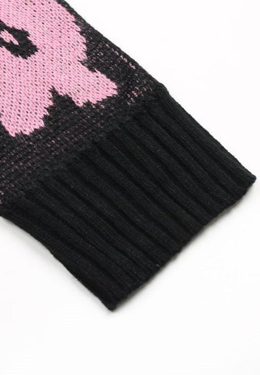 Open Cardigan Long Sleeve Floral Pattern Pink Knit Long Cardigan