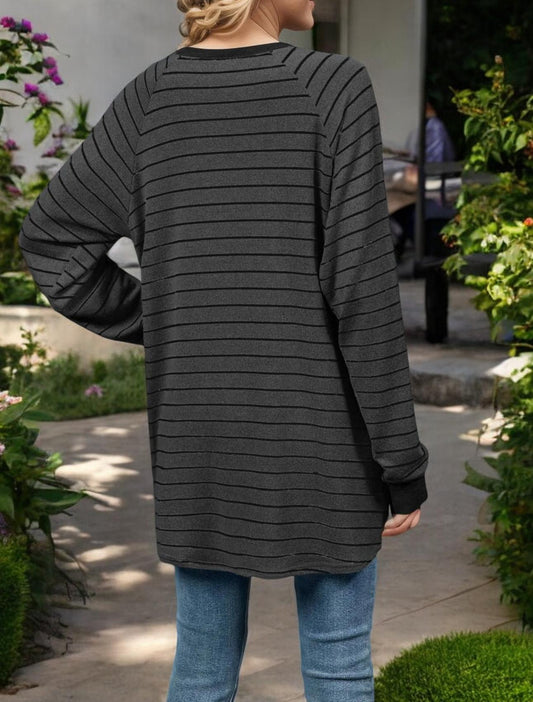 Oversized Striped Long Sleeve Top with Relaxed Fit