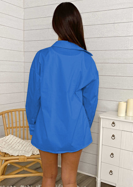 Oversized Striped Long Sleeve Button Down Shirt & Short Set