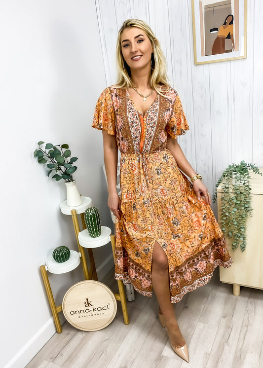 Paisley Printed V-Neck Trim Detail Sleeveless Mini Dress