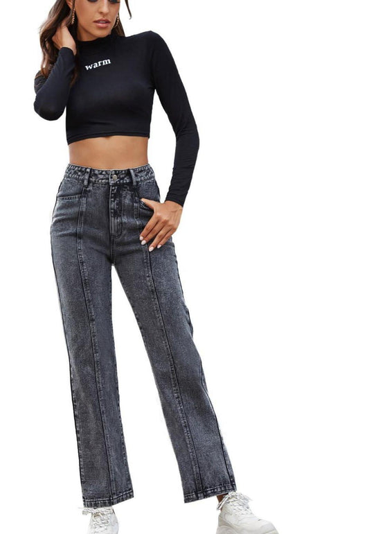 Acid Wash Front Seam Boot Cut High Waist Denim