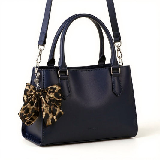 Anna-Kaci Leopard Print Fabric Bow Keychain with Silver Heart Clip Charm