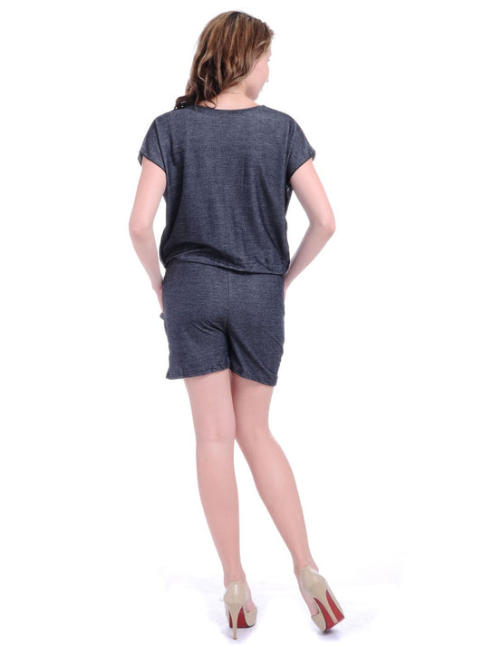 Womens Grey Loose Slouchy Cowl Neck Short Sleeve Romper Shorts