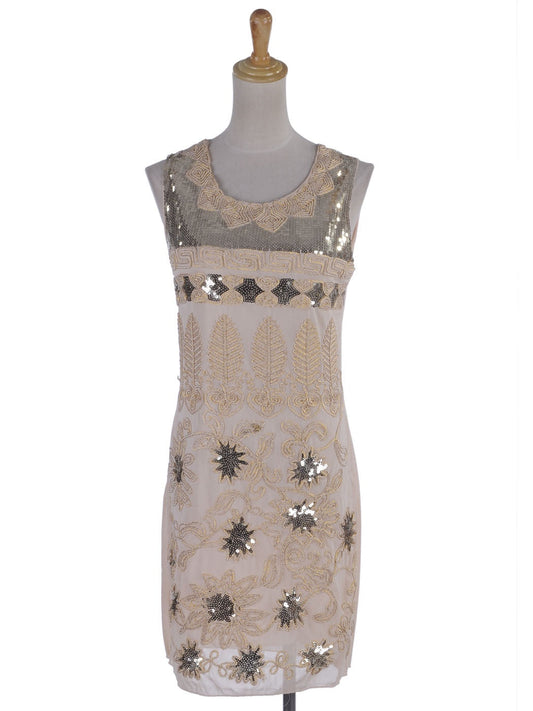 Womens Short Sequin Mini Skirt with Handed Beaded Flowers
