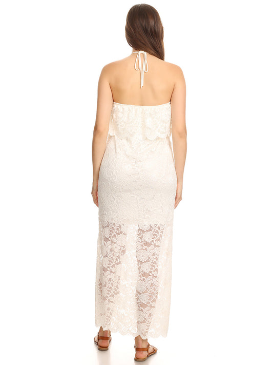 Womens White Lace Convertible Halter Strapless Maxi Dress Cover Up