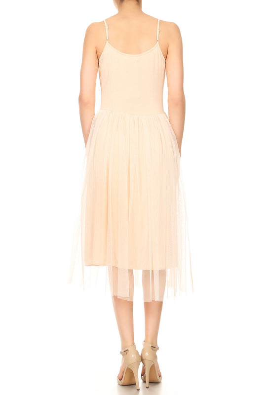 Womens Spaghetti Strap Camisole Slip Tulle Skirt Ballerina Dress