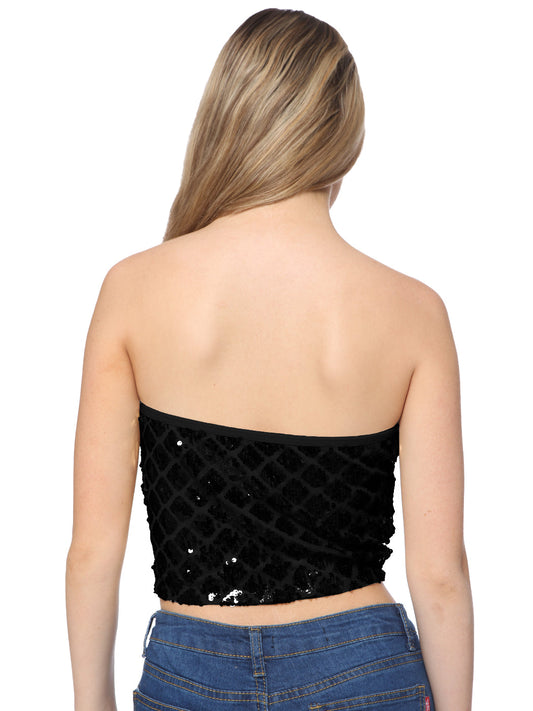 Womens Off Shoulder Sparkly Sequins Stretch Party Clubwear Tube Top
