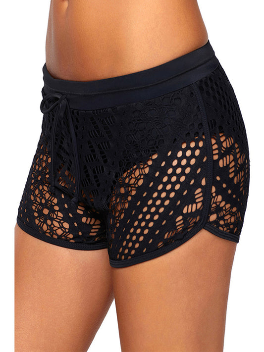 Womens Side Split Waistband Bokini Swim Lace Shorts with Panty Liner