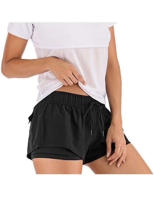 Yoga Running Shorts Sport Fitness Elastic Double Layer with Drawstring