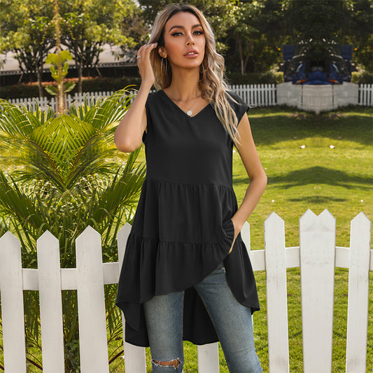 V-Neck Sleeveless A-Line Loose Mini Tunic Dress