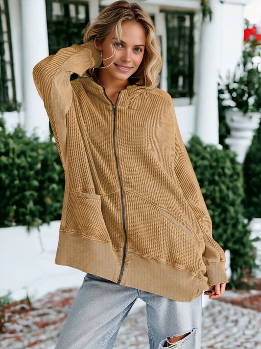 Waffle Knit Textured Hooded Jacket