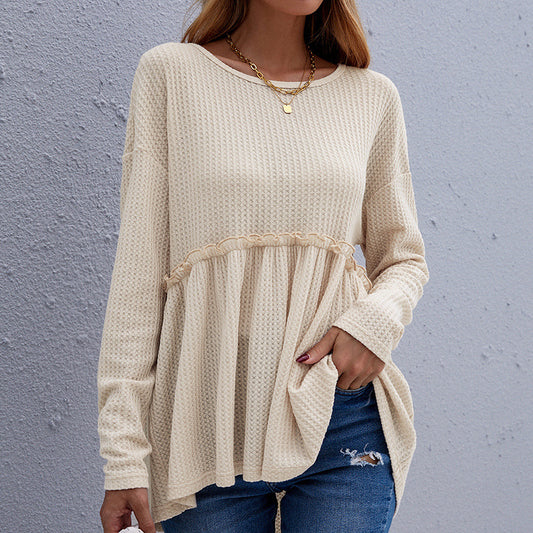 Sold outWaffle Knit Ruffle Long Sleeve Top